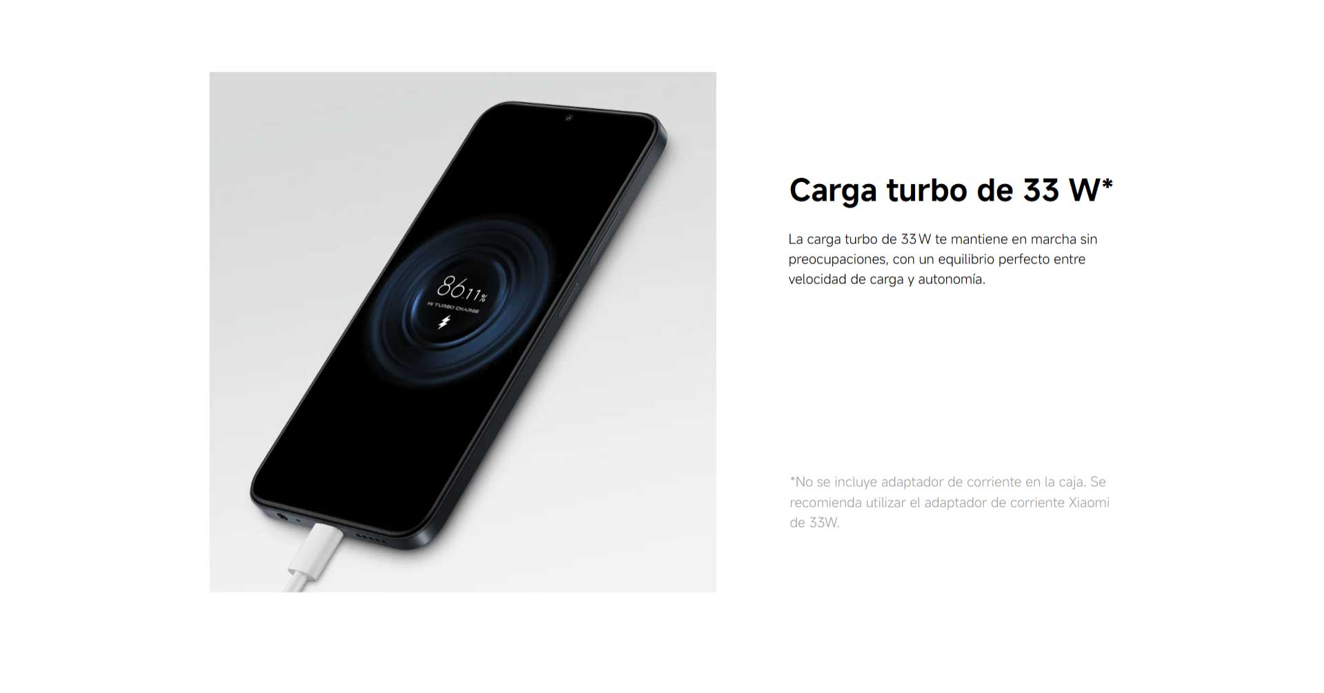 *No incluye adaptador de corriente. Se recomienda utilizar el adaptador de corriente Xiaomi de 33 W.