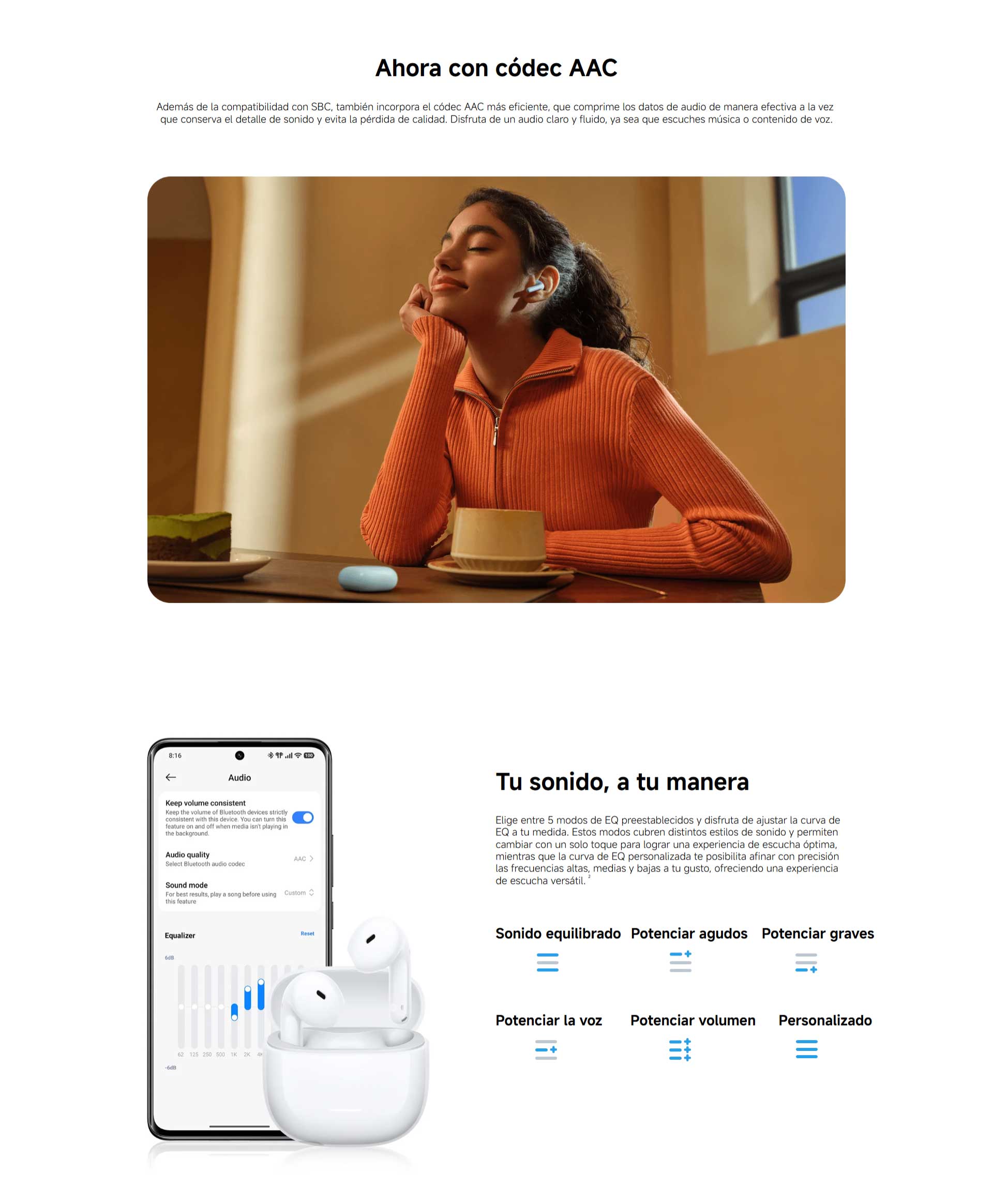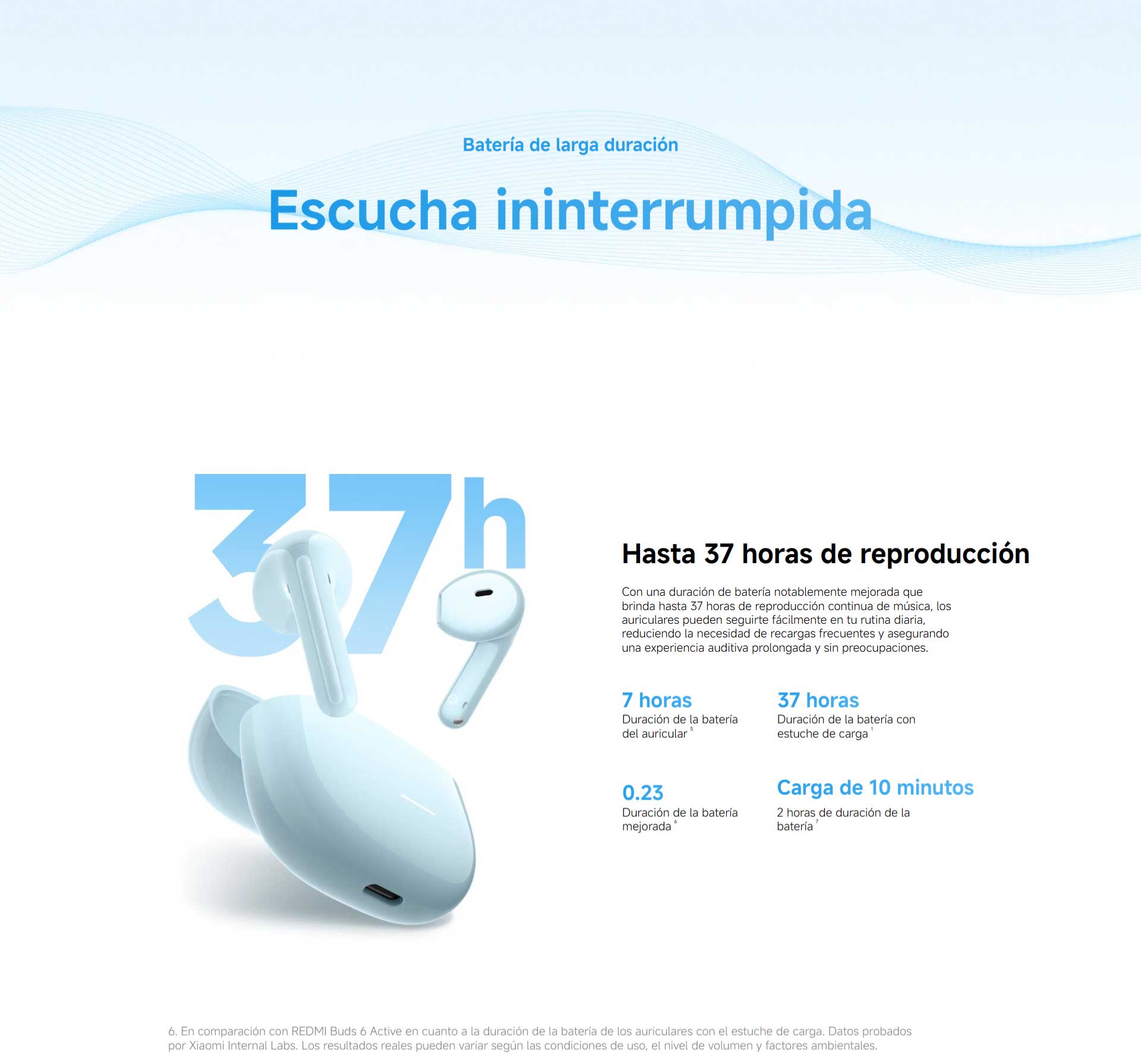 *La duración de la batería se refiere al tiempo de reproducción de música. Condiciones de prueba: conexión Bluetooth AAC con el volumen al 50 % y todas las demás funciones en la configuración predeterminada.