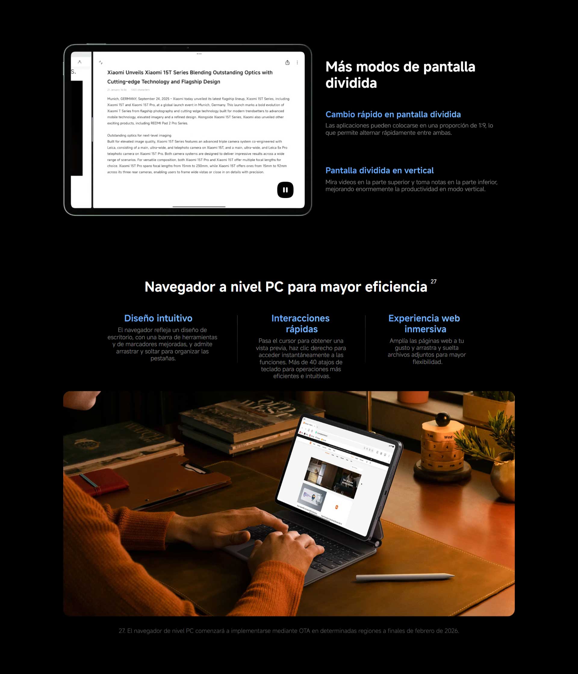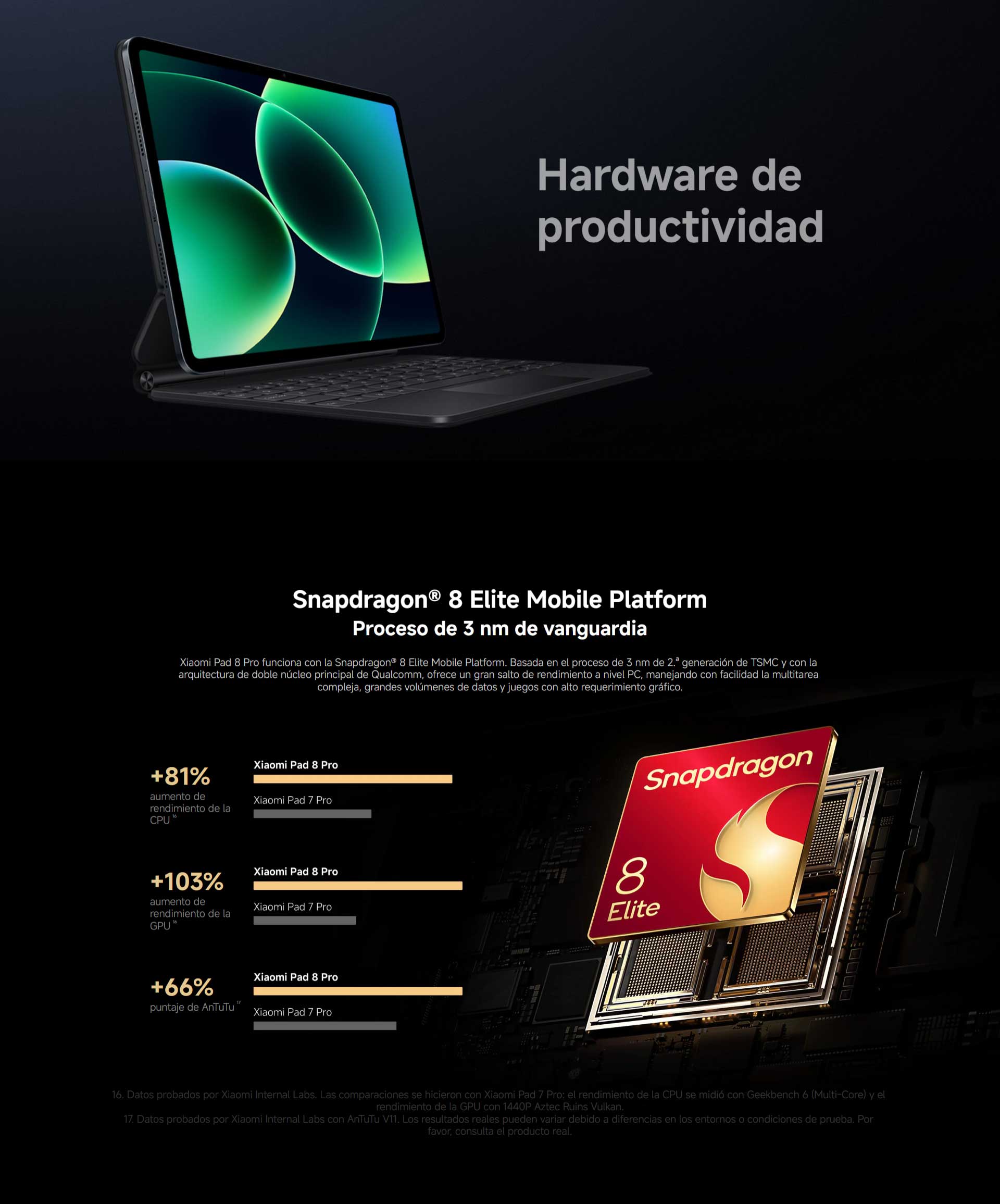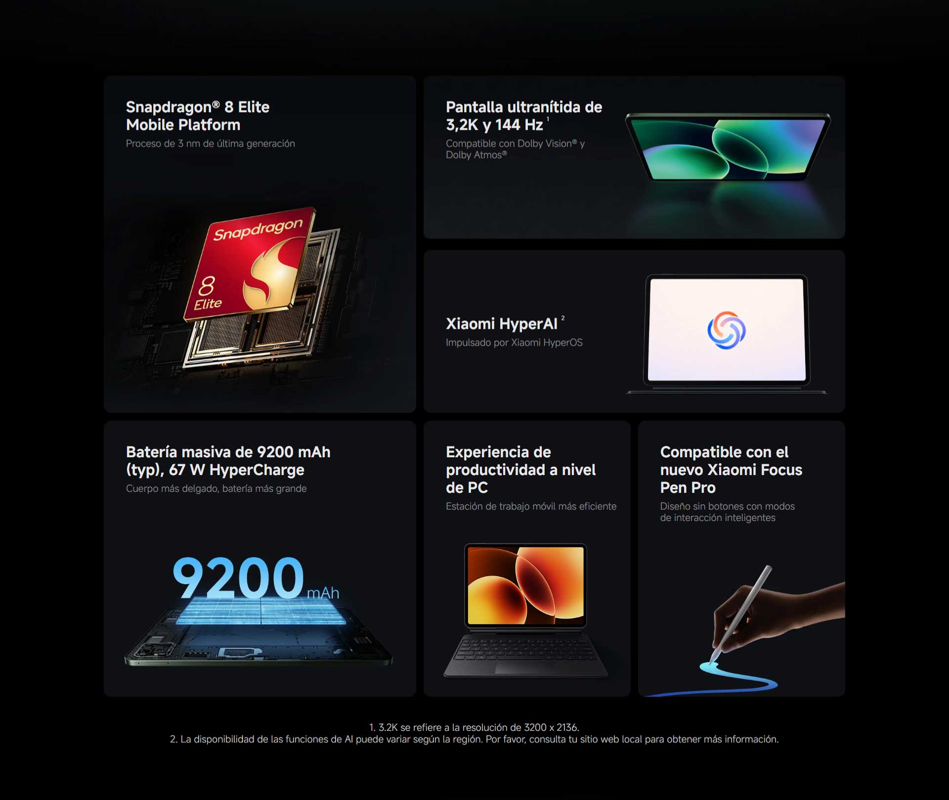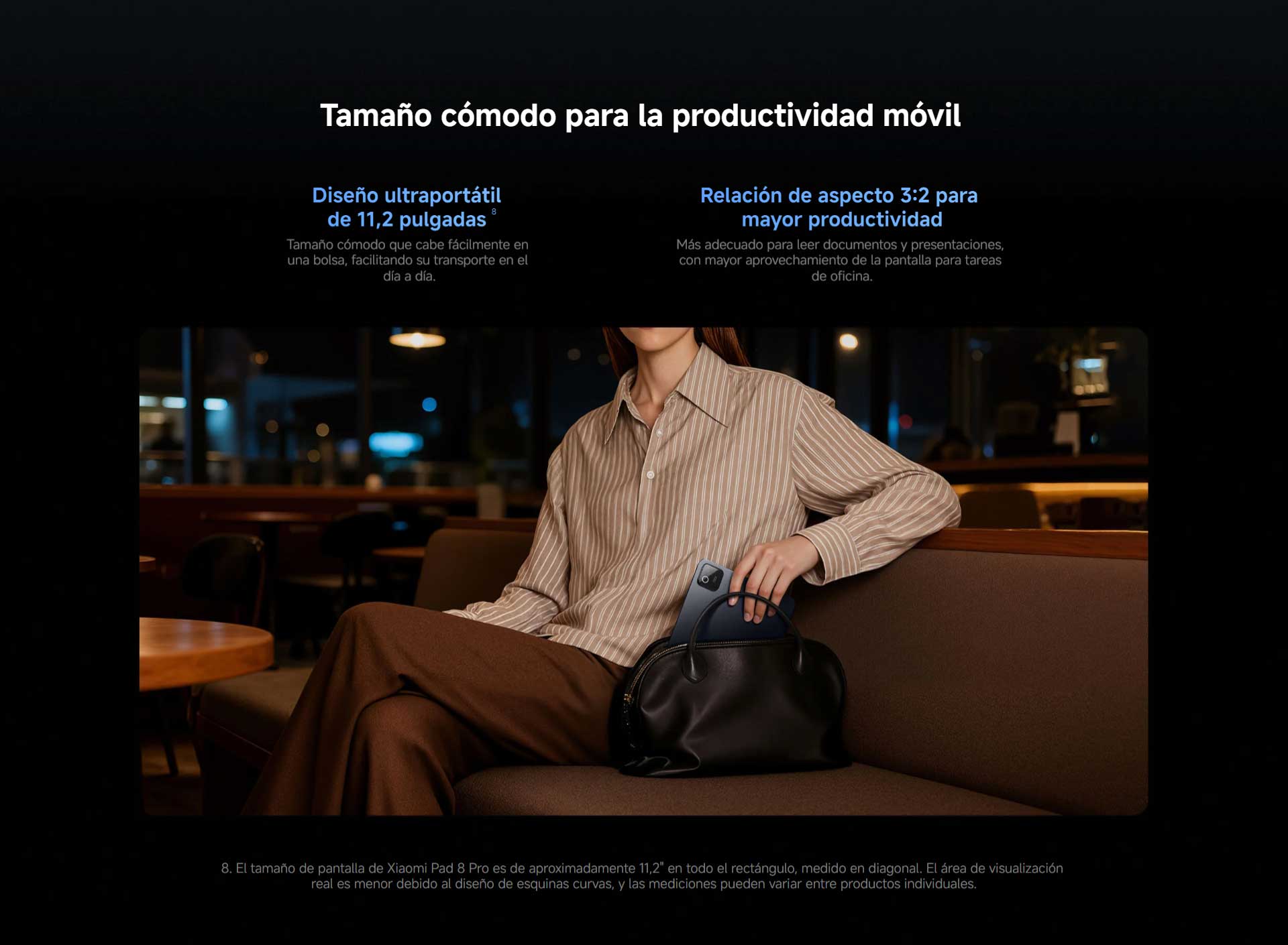 *El tamaño de pantalla de Xiaomi Pad 8 Pro es aproximadamente de 11.2″ en el rectángulo completo cuando se mide en diagonal. El área visible real es menor debido al diseño de esquina curva y las mediciones entre productos individuales pueden variar.